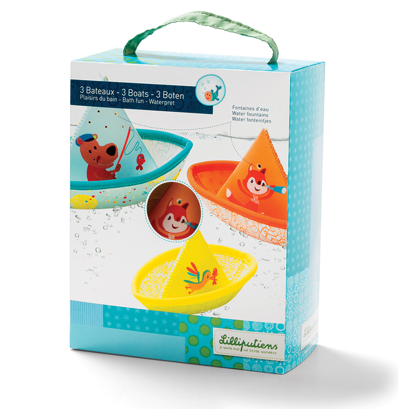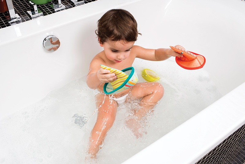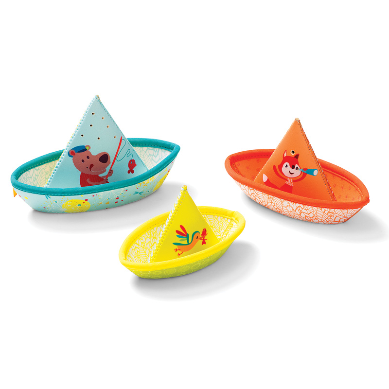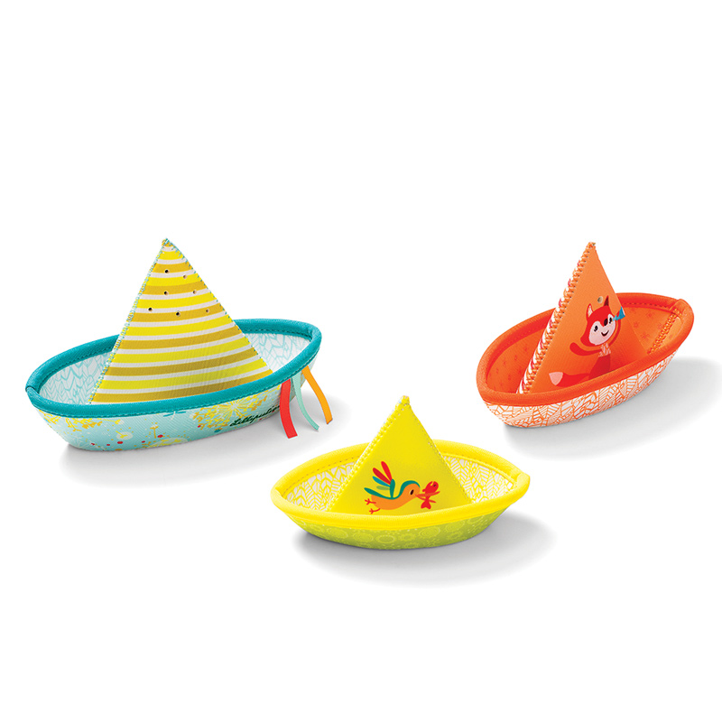 A bath toy with a twist. Stack the boats to make one large one, or sail all three. Fill them with water or tip them upside down and watch the water flow. Made from wetsuit material, you can use this over and over again in the bath or even great for outdoor water play.