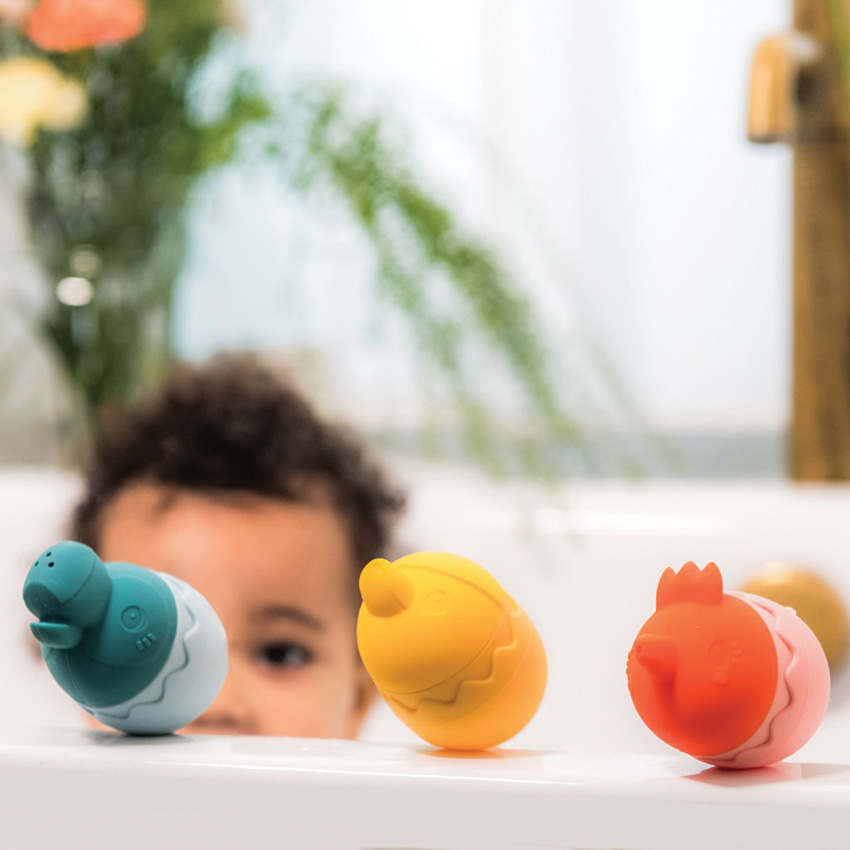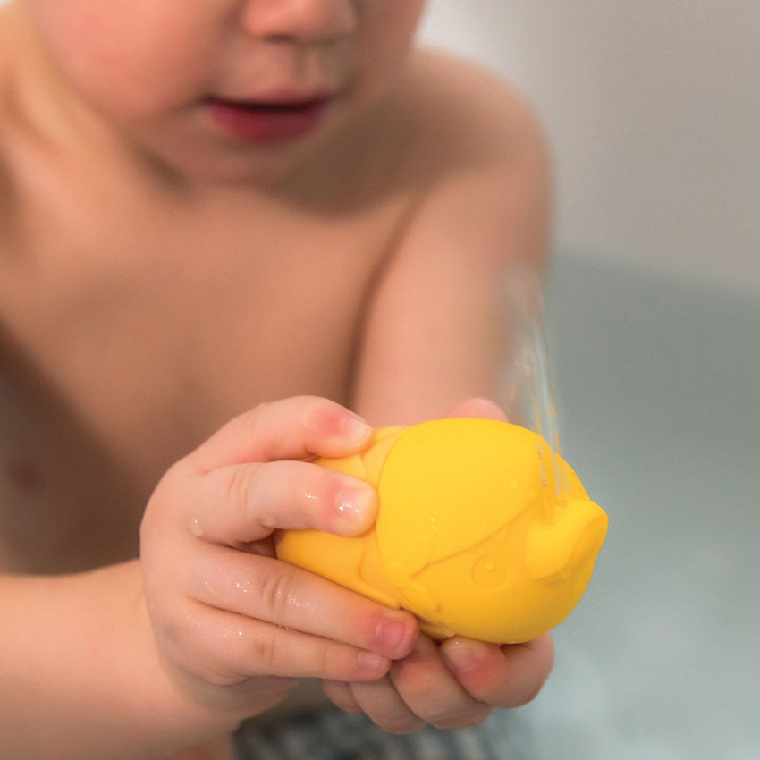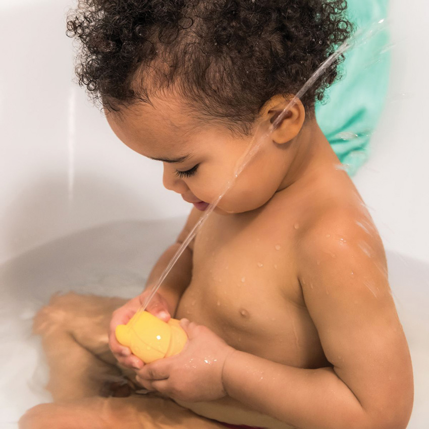 Gaspard Duck Squirter is made from 100% silicone and is safe to pop his pieces into the dishwasher for cleaning. Help Gaspard scoop up the water, and if you squeeze his tummy he sprinkles it everywhere! Bath time has never been more fun! You may need to rest after all that excitement, but don't worry, he is just as happy to sit in his egg shell and float next to you in the water.