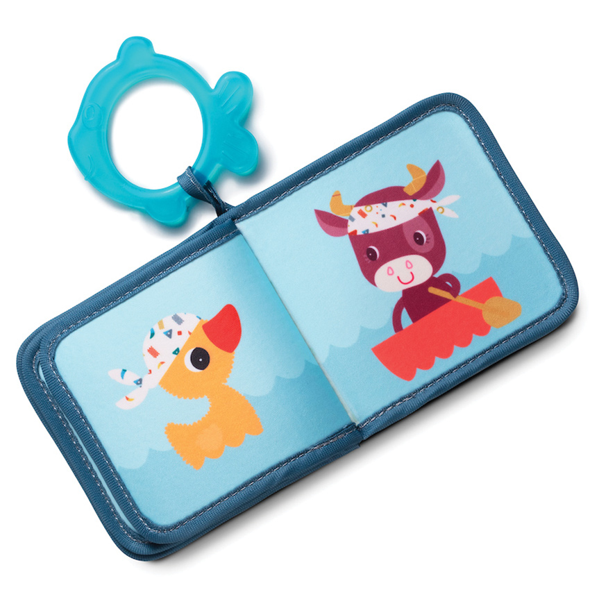 Go on a floating bath adventure with Ignace the Donkey and meet all of his friends. Perfectly sized for little hands, the supple neoprene fabric makes the Ignace Bath Playbook easy to dry and durable. The attached silicone ring can be used as another element to spark imagination through play or it can be used to soothe sore gums offering comfort and fun all in one!