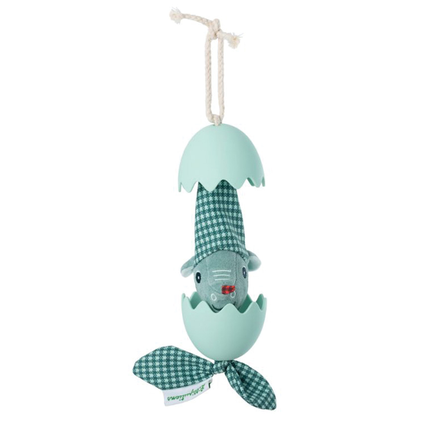 Joe Dancing Egg from Lilliputiens is an adorable silicone eggshell with a surprise inside - a cute little dragon waiting to hatch! Just give Joe's ribbon a gentle pull and watch as your little one's eyes light up with wonder as the super-cute and tactile dragon hatches and vibrates back into his shell. Not only is Joe Dancing Egg a fun toy for your little one to play with, but it also helps to develop their motor skills, visual development and aural development. As they pull the egg open, they are using their fine motor skills to grasp and pull, and as they watch the dragon hatch and vibrate, they are developing their visual perception and hand-eye coordination. The vibrations and sounds also stimulate their aural development, helping to strengthen their auditory processing skills. With its fun and interactive design, Joe Dancing Egg is a perfect toy for babies and toddlers. He is able to be hung anywhere fom the organic cotton rope and made from high-quality silicone that is safe and durable for little hands.
