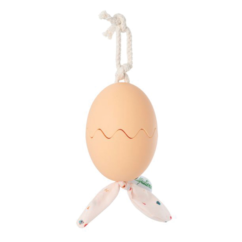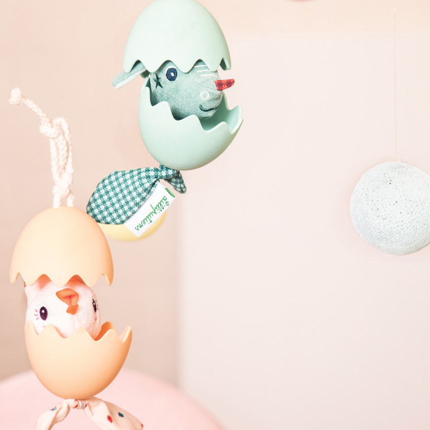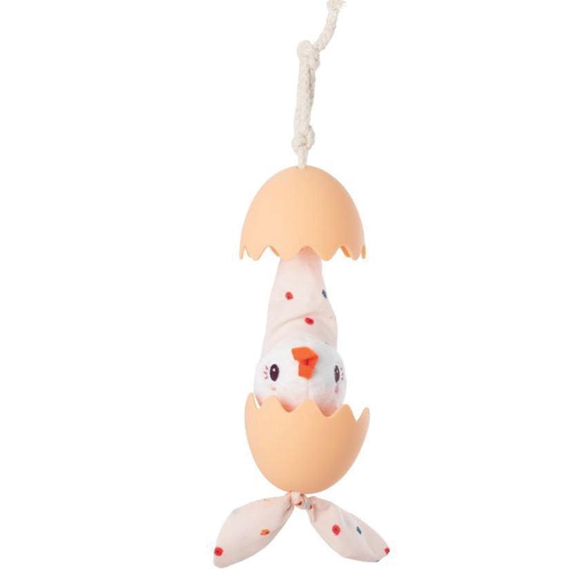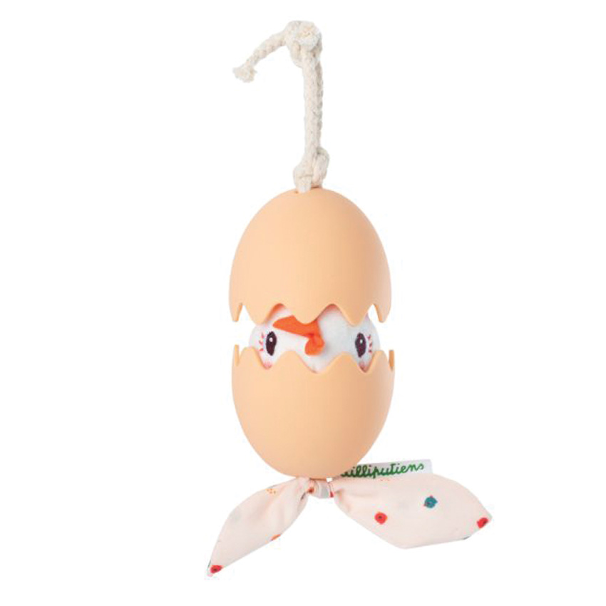 Paulette the chicken Dancing Egg from Lilliputiens is a delightful toy designed to stimulate motor skills, and aid in visual and aural development. With its silicone eggshell and cute chicken design, its sure to capture every child's imagination and provide hours of entertainment. To play, gently pull the cotton rope to see her hatch from her shell. Little ones will be fascinated as they watch her vibrate back into her shell. The gentle motion and cute design of Paulette will encourage children to engage with their senses and develop their hand-eye coordination. The sound of the rope being pulled and the gentle vibration of Paulette as she returns to her shell will involve thier sense of hearing and help to improve their ability to distinguish sounds. Paulette also provides an excellent opportunity to develop their fine motor skills. The act of pulling the rope encourages children to use their hands and fingers, improving their dexterity and coordination. With its cute design and simple gameplay, it can be hung anywhere at home or on travels to delight baby for hours.