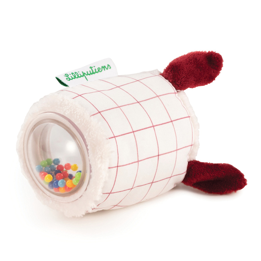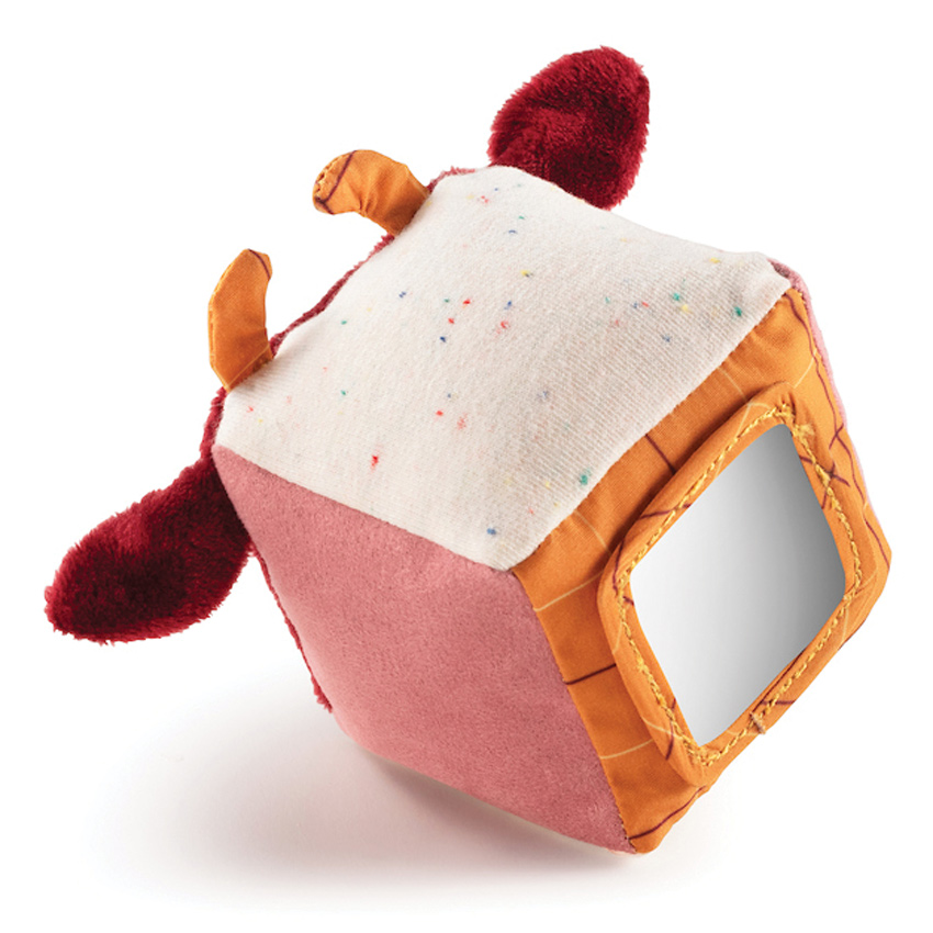 The Set of 4 Farm Shapes comprises a chicken, a pig, a sheep and a cow, each with its own geometric shape, texture and sound. The cow cube has a bell and the piggy ball has a rattle. Squeeze the chicken prism to hear her crinkly sound and the cylindrical sheep has a special surprise. On it's bottom is a mirror with balls making it not only an auditory delight, but a visual element to enchant and entertain. Gorgeous fabrics with well known farm animals ensure the Lilliputiens Farm Shapes will a favourite in the nursery and a great way to encourage fine motor skills and stimulate the senses.
